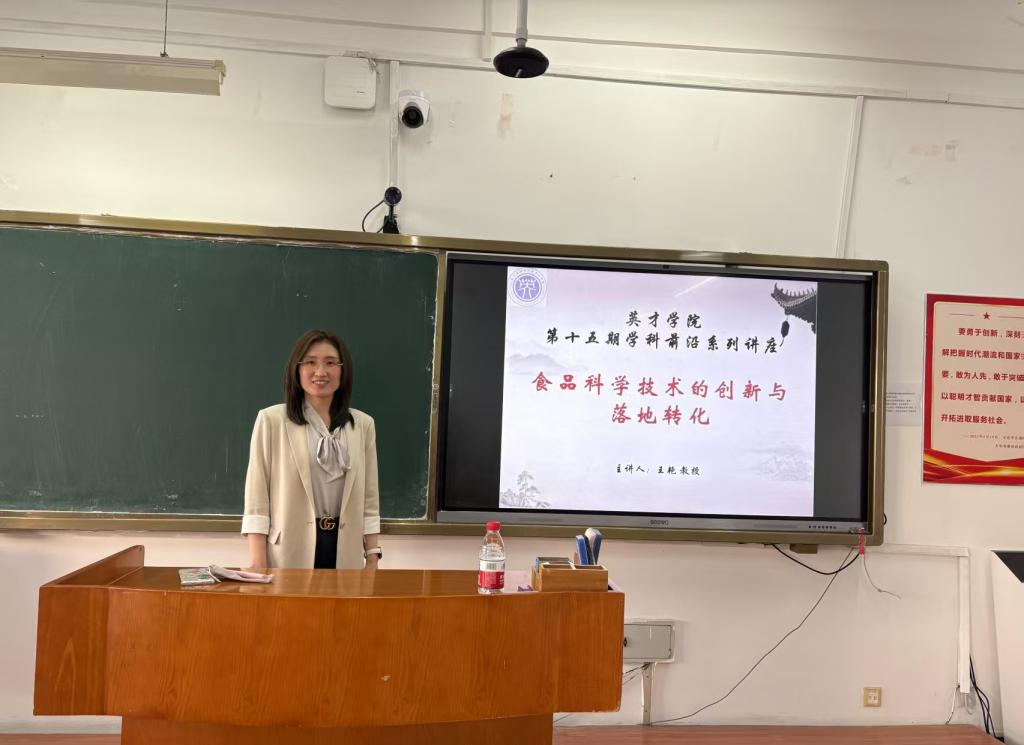 为强化学生专业知识,提高专业素养,拓宽学生在专业领域的视野,英才学院于6月6日晚在0718举办了第十五期学科前沿系列讲座,邀请食品工程学院王艳教授为学生作了"食品科学技术的创新与落地转化"为主题的讲座。