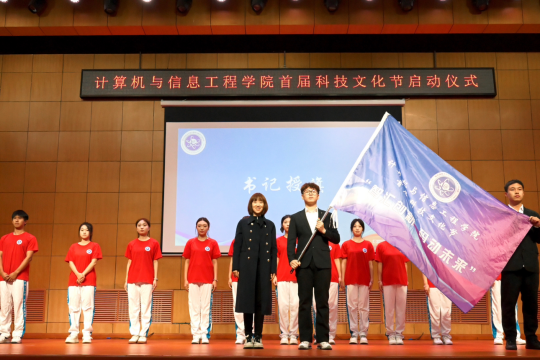 最后,学院党委书记刘天教授庄重地将首届科技文化节旗帜授予学生代表。这面飘扬的旗帜象征着科技创新精神的传承,寄托着学院对学子们的殷切期望。