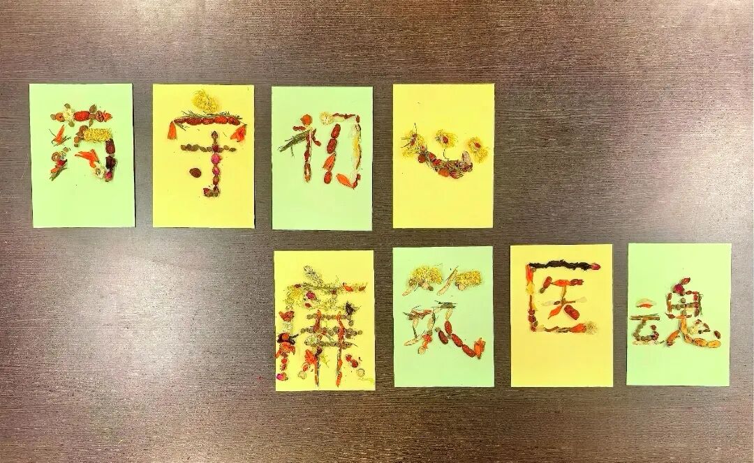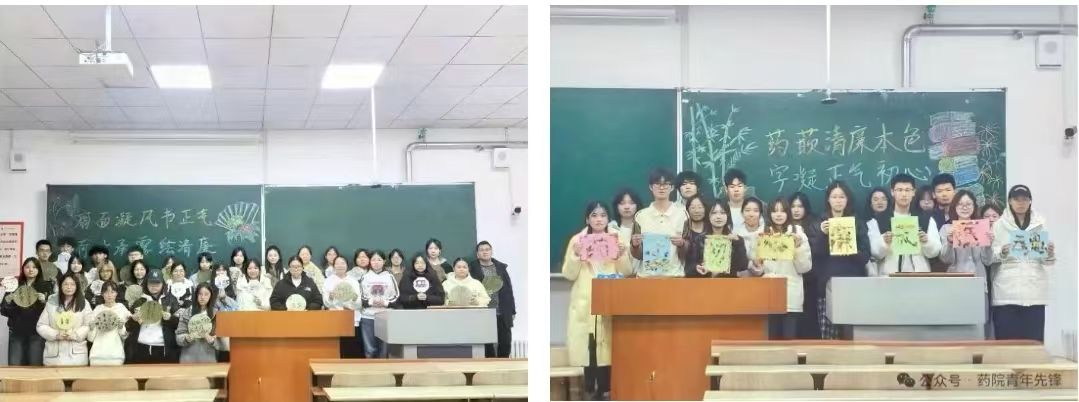 药学院面向全体学生开展以“药嵌清廉本色,字凝正气初心”为主题的中药材廉洁文化拼字活动。将学院专业特色与廉洁教育深度融合,学生在接触中药材、协作拼字的过程中,既加深对专业材料的认知,又体悟廉洁精神的内涵,推动廉洁理念与专业学习、生活实践紧密结合,为成长为守正笃行的医药人才务实思想根基。药学院同时开展了以“扇面凝风书正气,荷叶承露绘清廉”为主题的廉洁文化书画创作活动,学生在笔墨间体悟廉洁内涵,用艺术语言传递清廉追求。
