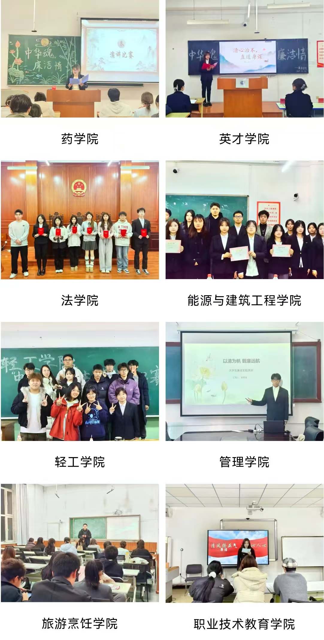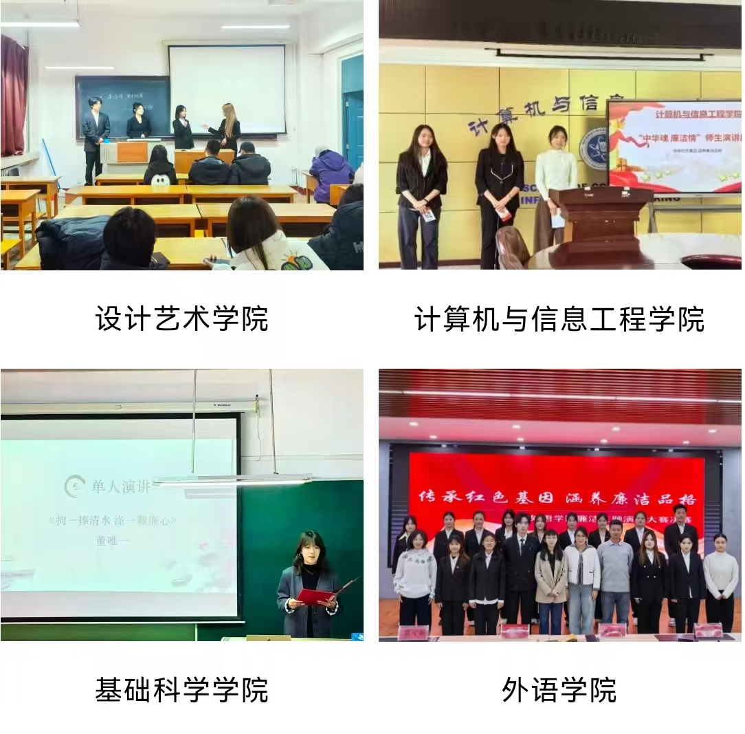 各学院分别举办了“中华魂 廉洁情”演讲比赛初赛。各学院师生积极参与,紧扣新时代反腐倡廉建设的主题,围绕廉洁文化的历史传承与时代价值展开深情讲述,结合古今案例、优秀中华传统故事、红色故事、校园生活等,阐述廉洁对个人修养、社会风气和国家发展的深远意义。选手们或慷慨激昂,或娓娓道来,无一不在真情实感中将廉洁精神融入专业学习与人生追求之中。展现了新时代师生崇廉尚洁、奋发向上的精神风貌。比赛不仅提升了师生对廉洁文化的认知深度,更激发了其内在的道德自觉与价值追求。