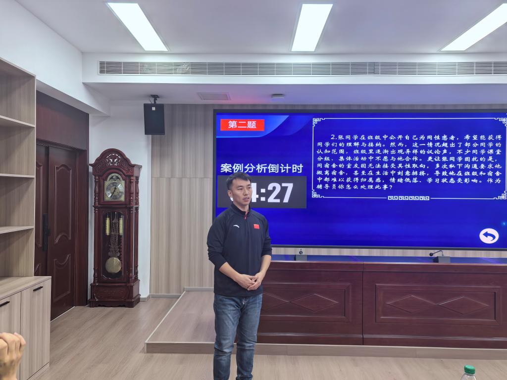 模拟演练过程中,参照案例分析和谈心谈话赛事流程,2025年校赛决赛晋级辅导员逐一进行抽题答题演练,于洋团队进行即时性、针对性的精准指导,在肯定亮点、特点的同时,指出优化方向,给予具体改进建议,切实帮助辅导员将日常工作积累转化为参赛实操能力,有效提升运用专业化方法开展学生工作的水平。