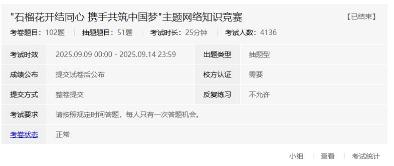 以“学”铸魂,夯实思想根基。开学初依托易班发展中心网络教育平台面向大一新生开展了“石榴花开结同心 携手共筑中国梦”网络知识竞赛。竞赛题库聚焦民族政策法规、中华历史文化等核心内容,创新“以赛促学、以学增智”模式,有效引导我校学生系统学习铸牢中华民族共同体意识相关理论,推动理论认知转化为思想自觉与行动自觉,夯实民族团结的思想根基。