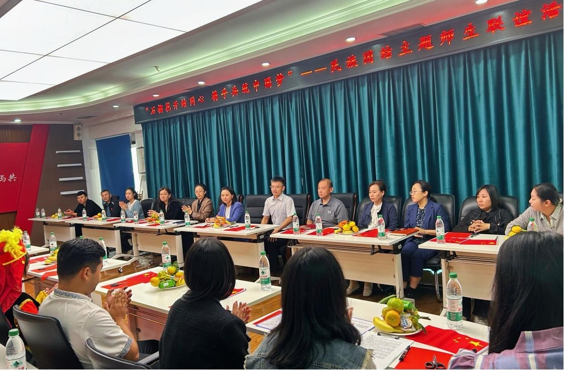 以“情”聚心,厚植团结底蕴。在民族团结主题师生联谊活动中,各民族师生代表分享成长故事交流心得,表演精彩的民族歌舞,并体验了非物质文化遗产剪纸。大家在沉浸式体验中感受各民族文化的独特魅力,拉近了心灵距离,生动诠释“中华民族一家亲”的深厚情谊。