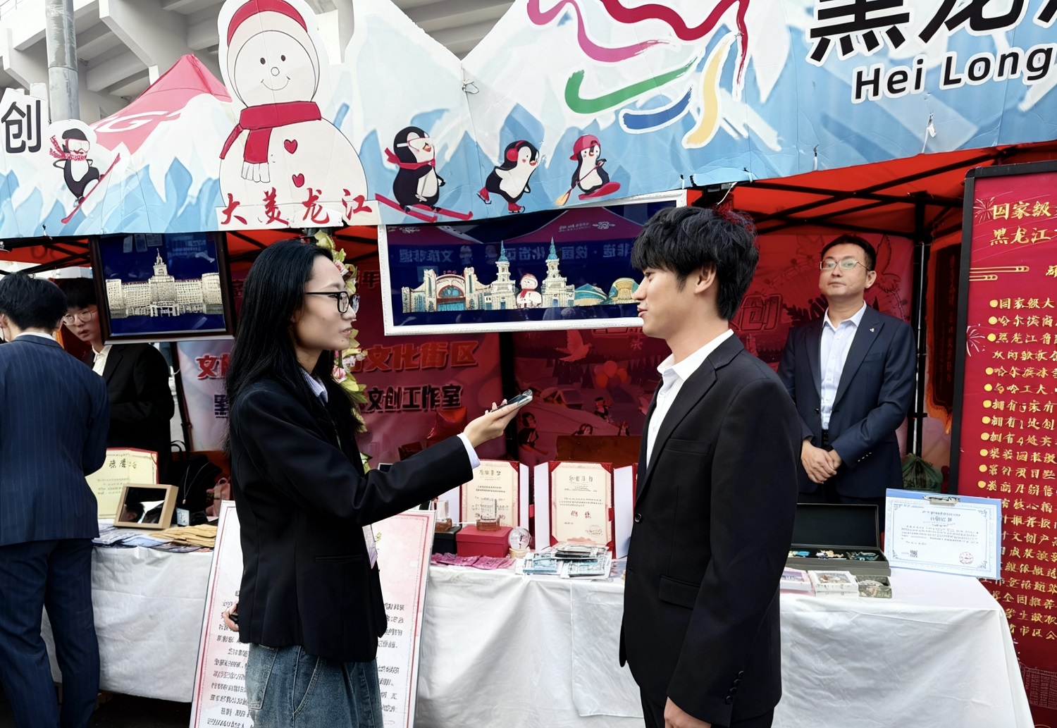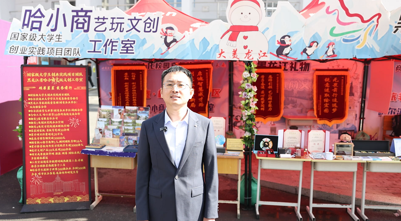 国家级大学生创业实践项目核心成员、哈小商艺玩文创工作室总负责人兼主席、创业孵化园213总店长、黑龙江锋创科技有限公司董事长兼法人曹玉超介绍说:“在老师的倾心指导下,目前,团队已荣获国家级、省级等奖项60余项。此外,团队还立足龙江、面向全国,大力推进校企合作交流,持续开展校外调研交流,与黑龙江旅投集团、哈尔滨冰雪大世界等多家企业开展合作,打造龙江文创品牌。2023年,工作室荣获学校年度学生集体称号。目前,团队累计注册成立3家公司,3000余名同学参与创业实践,多名同学毕业后到世界及全国500强企业工作。”参加此次嘉年华活动,“哈小商”不仅以青春创意为嘉年华赋能,更以实际行动诠释了校企协同育人的内涵,为龙江文旅融合注入了青春力量。