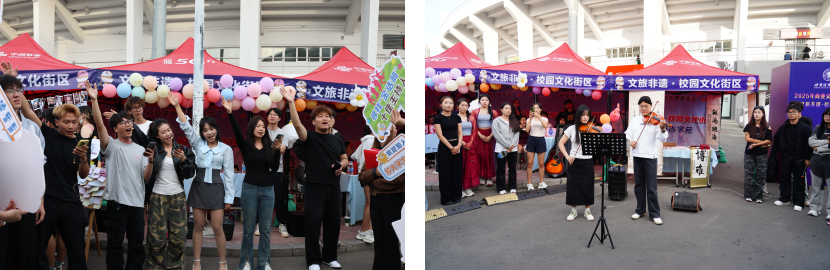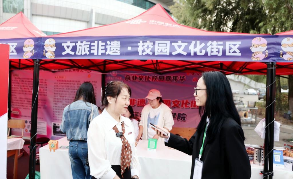 哈尔滨商业大学2025年商业文化校园嘉年华的文旅非遗·校园文化街区热闹非凡,文旅魅力、非遗匠心与校园活力在这里“热情相拥”。这里,聚焦了哈尔滨极地公园、波塞冬旅游度假区等哈尔滨文旅新势力,活泼可爱的淘学企鹅也来到了现场,师生们纷纷驻足观看,拍摄照片、视频,在与小企鹅们“同框”的同时,也将这份喜悦与欢乐分享给身边人。冰雪雕技艺非遗工坊、黑龙江龙妮手工编织农民专业合作社等多个非遗项目参展的特色展品摆放整齐、各具特色,师生们仔细观看、触摸感受,聆听传承人们介绍产品细节、讲述自己的匠心故事。街区还融合展示了学校设计艺术学院、食品工程学院、药学院、旅游烹饪学院和学生项目、团队在实践育人和创新创业方面取得的成效,以及校大学生传媒中心、校大学生艺术团、轮滑社、摄影协会等学生组织和社团的精彩文艺表演和才艺展示,校园文化氛围浓郁而热烈。