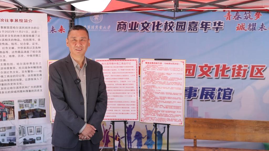哈尔滨往事展馆作为一座汇聚城市记忆的民间文化宝库,为师生带来了沉浸式的历史体验。据黑龙江省收藏家协会副秘书长、哈尔滨往事展馆馆长姜本利介绍,他个人收藏的上万件展品生动展现了哈尔滨百余年来的城市发展、中俄文化交融、红色历史及“音乐之都”的独特脉络。他表示,“感谢商大的诚挚邀请和大力支持,通过参加这次嘉年华活动,能够让同学们感受到哈尔滨独特的文化底蕴,我为此感到自豪。”姜本利副秘书长的讲解与介绍,搭建起一座连接校园与城市文脉的文旅桥梁,让青年学子深度感知了龙江深厚的历史积淀和文化底蕴。