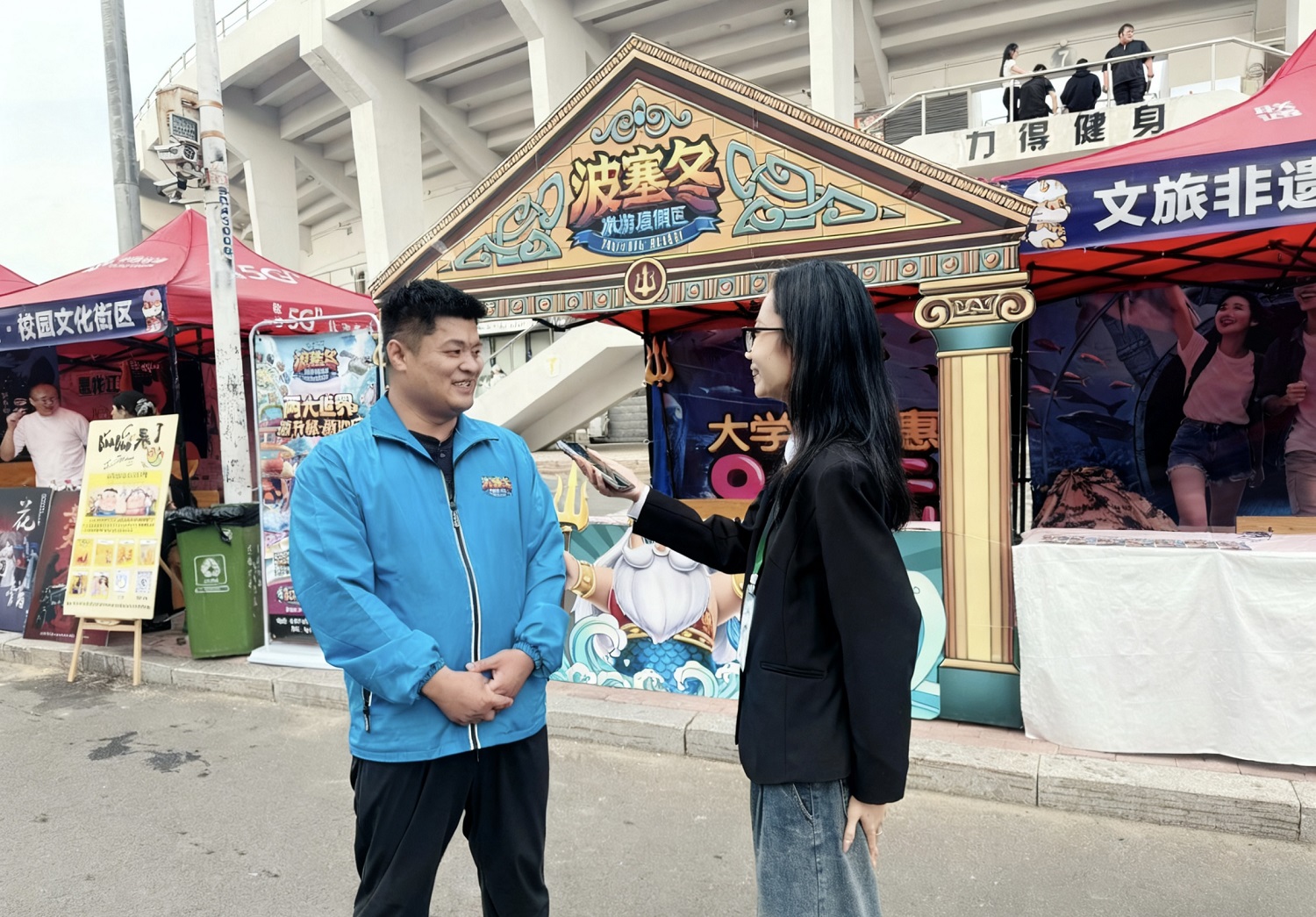 哈尔滨特色文旅企业——哈尔滨波塞冬旅游度假区也来到了嘉年华现场。哈尔滨波塞冬旅游度假区市场部负责人王家浩向师生们详细介绍了度假区主题特色。王家浩说:“哈尔滨波塞冬旅游度假区是集多元特色为一体的综合性旅游度假区。企业长期致力于匠心打造旅游产品,提升服务品质,以游客游玩体验至上,不断完善产品体系。这次来到哈尔滨商业大学商业文化校园嘉年华活动,企业希望能通过校园这个窗口,让更多人看到我们哈尔滨有这么多优秀的文旅企业,可以满足游客更多元的游玩需求,借着‘尔滨’冬季文旅热的发展趋势,为‘尔滨’文旅四季长虹贡献一份属于我们的力量。”