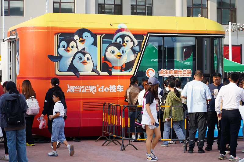 淘学企鹅高校巡游首站“落户”哈尔滨商业大学2025年商业文化校园嘉年华,为活动现场增添了别样的色彩。作为我省知名文旅地标的哈尔滨极地公园,将珍稀的南极巴布亚企鹅带入大学校园,创造了极地科普与校园活动深度融合的全新体验。哈尔滨极地公园生物部副经理陈会海介绍说:“为顺利完成本次巡游,极地公园与学校前期进行了大量的沟通交流,确定工作方案。为确保活动有序进行,极地公园派出专业团队,配备了具备制冷与环境控制系统的特制房车,并由兽医与饲养团队全程保障企鹅健康。”此次极具震撼力的“极地萌宠互动”,不仅为学生们带来了难忘的科普实践,更生动展现了龙江文旅企业以创新形式走近年轻群体、拓展市场边界的积极姿态,为提升区域文旅吸引力和青年认同感注入了鲜活能量。