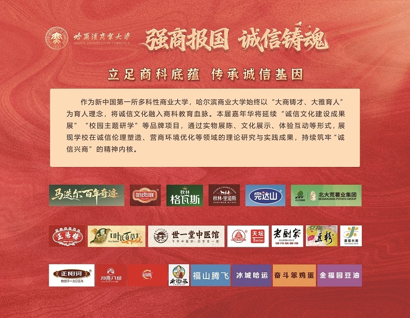 商脉悠悠,诚信为基;“老字号”焕新,新力量涌流。为更好发挥高校服务地方经济发展的作用,弘扬龙江独特商业文化,讲好龙江“老字号”及省内名企品牌故事,以全省“诚信兴商宣传月”为契机,以学校全力服务龙江商业发展为依托,充分彰显龙江市场主体活力与创新力,搭建政、校、企三方合作平台,助力诚信龙江建设,铸牢龙江企业诚信品质,提振龙江经济发展士气,广泛凝聚高质量发展的强大合力,特举办“2025商业文化校园嘉年华”活动。