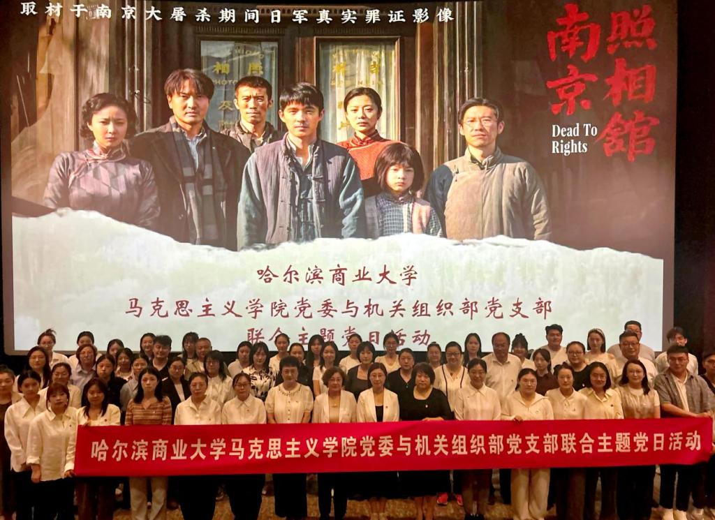 为深入学习贯彻习近平总书记在纪念中国人民抗日战争暨世界反法西斯战争胜利80周年大会上的重要讲话精神,大力弘扬伟大抗战精神和爱国主义精神,引导党员深刻感悟历史厚重、传承红色基因,9月12日下午,马克思主义学院党委与机关组织部党支部联合开展“铭记抗战历史 赓续红色血脉”主题党日活动。马克思主义学院党委书记郑秋月、组织部副部长王鑫华带队,马克思主义学院全体师生党员及机关组织部全体党员共同参与,通过观看抗战题材电影《南京照相馆》,在光影叙事中重温峥嵘岁月,汲取奋进力量。