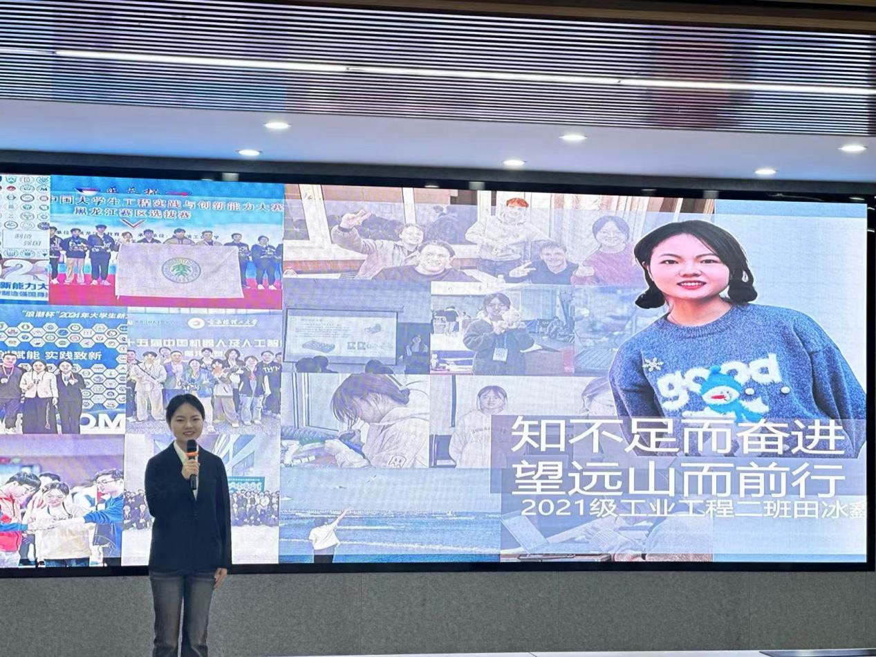 在事迹宣讲环节,来自不同学院的五位宣讲人怀着真挚的情感和感恩的心,共同表达了国家资助政策对个人成长所给予的帮助,为他们的学业和人生发展提供了坚实的支持与保障,让他们得以在求学道路上坚定前行,追逐梦想。五位同学分别分享了各自独特而深刻的成长经历。轻工学院田冰鑫始终以学习夯实基础,以科研竞赛探索未知。她认为,用技术创新回应真实需求,以人文情怀点亮工程价值,是当代工科人的使命与担当。