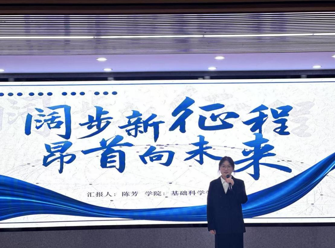 基础科学学院陈芳分享了学生工作给自己带来的成长与收获,表示三年的学生工作经历提升了自己解决问题的能力、协同工作的意识以及为同学服务的责任与担当。