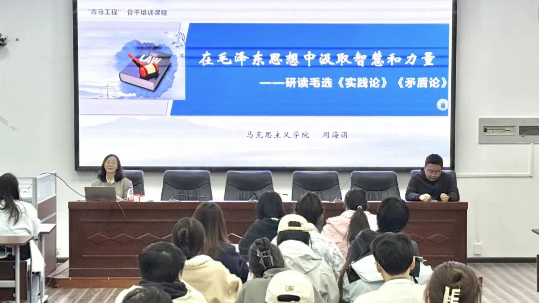 为进一步提升我校“青马工程”学生骨干理论素养,坚定理想信念,校团委邀请马克思主义学院周海娟老师以《在毛泽东思想中汲取智慧与力量》为题,为校级“青马工程”学生骨干作专题讲座。