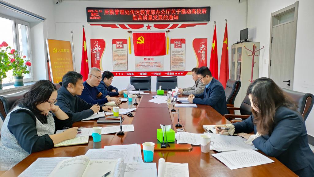 为全面贯彻党的二十大精神和全国教育大会部署,落实《教育强国建设规划纲要(2024-2035年)》要求,持续深化干部能力作风建设,4月15日,我校后勤管理处召开专题会议,深入学习《教育部办公厅关于推动高校后勤高质量发展的通知》(以下简称《通知》),系统谋划部署重点任务,明确以“服务育人、保障民生”为主线,全面推进后勤治理体系和治理能力现代化,为学校高质量发展注入强劲动能。