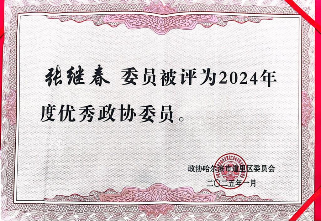 2025年1月2日,道里区十七届人大五次会议和道里区政协十五届四次会议在道里文化宫召开。我校区人大代表陶萍、政协委员张继春提交了《关于推进道里区“友好型”适老社区建设的建议》《关于在中央大街设置冰雪文化展馆的建议》《关于在哈尔滨道里区沿江文化旅游带增设赏冰玩雪项目体验的建议》3项提案议案,张继春被评为2024年度“优秀政协委员”。