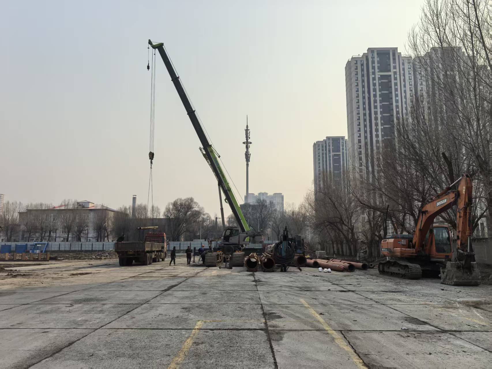 春风浩荡,战鼓催征。走进C区校园西北侧“两个中心”项目建设工地,机械轰鸣、车辆穿梭,建设者们忙碌有序,一派热火朝天的奋进景象。3月下旬,工程中心、实训中心两大项目同步复工续建,大型机械进场作业,桩机整装待发,建筑材料有序到场,场地平整与土方开挖同步推进。从设计蓝图到实地施工,一砖一瓦间,正书写着哈尔滨商业大学“十五五”开局之年的实干答卷。